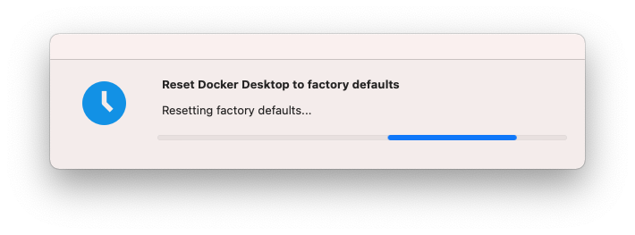 Una posible alternativa de solución es dar click en el botón Reset Docker to factory defaults