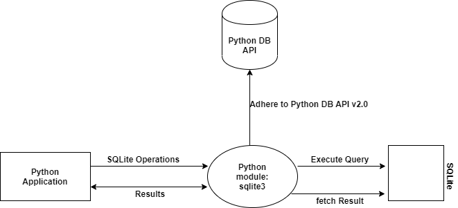 La forma en la que el intérprete de Python trabaja con la biblioteca sqlite3 para recibir instrucciones en SQL y llevar a cabo su ejecución, se ilustra a continuación.