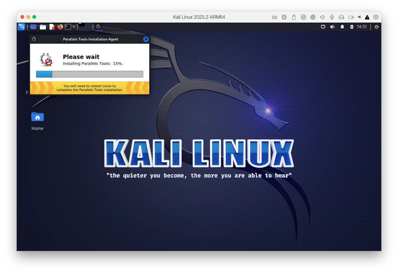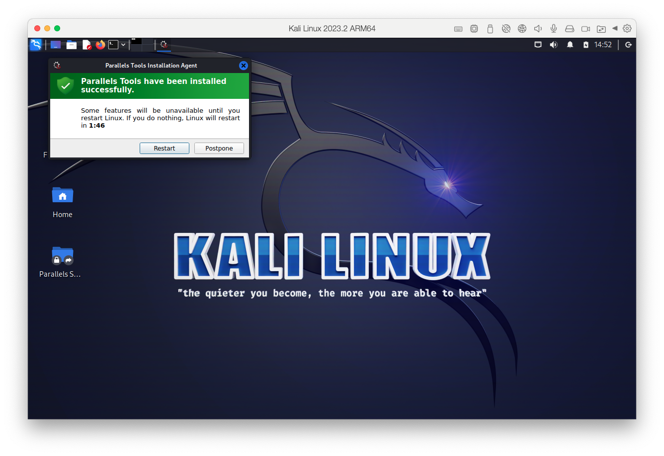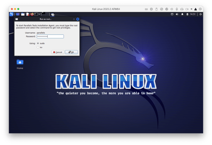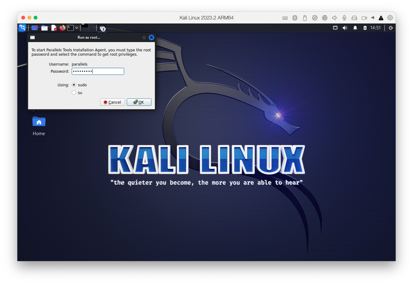 - «Kali inside Parallels (Guest VM)«, kali.org, web. Updated 2024.03.06; visited: 2025.05.21. URL: https://www.kali.org/docs/virtualization/install-parallels-guest-vm/.